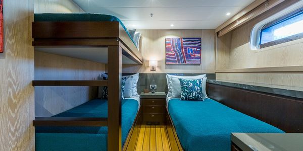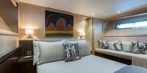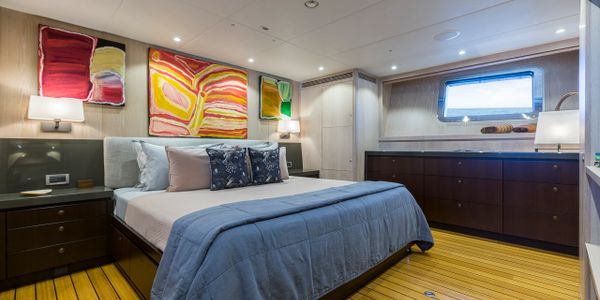The 111ft /34m Custom expedition yacht features sophisticated exterior design and engineering by Gregory Marshall. Previously named VvS1 (after a grade of diamonds), she was proudly introduced to the Australian charter market following an extensive refit in New Zealand in 2016-2017. Spacious living areas lead to full-height windows dare the passing views to vie for your attention with the impeccably decorated interior. AKIKO is versatile enough to enter small bays, anchor behind coral atolls or for game fishing over submarine reefs.