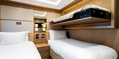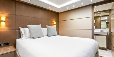 FRATELLI’S interior configuration has been designed to comfortably accommodate up to 12 guests in 5 cabins, comprising a full-beam master suite on the main deck, 2 double cabins and 2 twin cabins. She is also capable of carrying up to 5 crew onboard to ensure a relaxed luxury yacht experience.